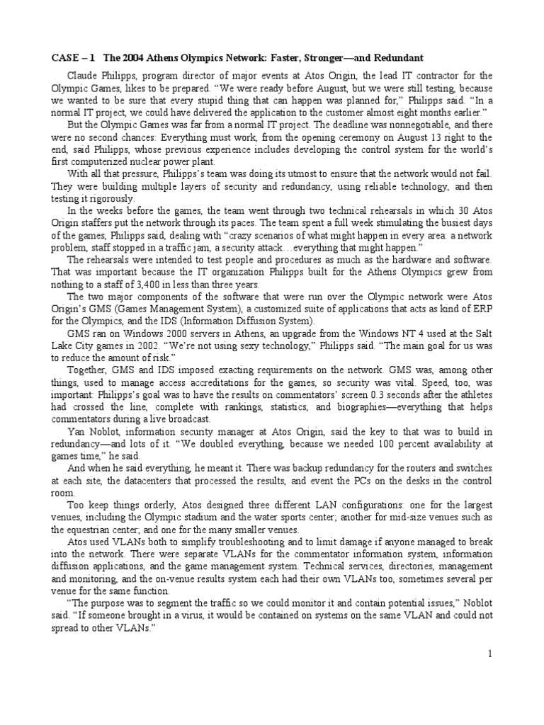 CASE 1 The 2004 Athens Olympics Network: Faster, Strongerand Redundant Claude Philipps, program director of major events