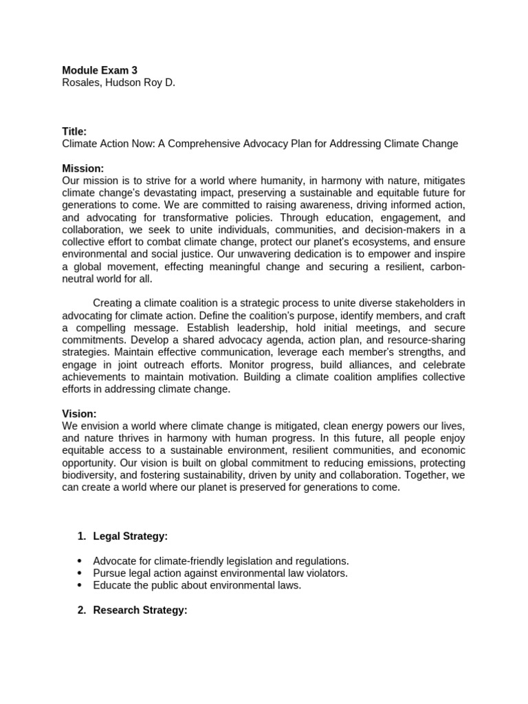 Climate Action Now: A Comprehensive Advocacy Plan for Addressing Climate Change