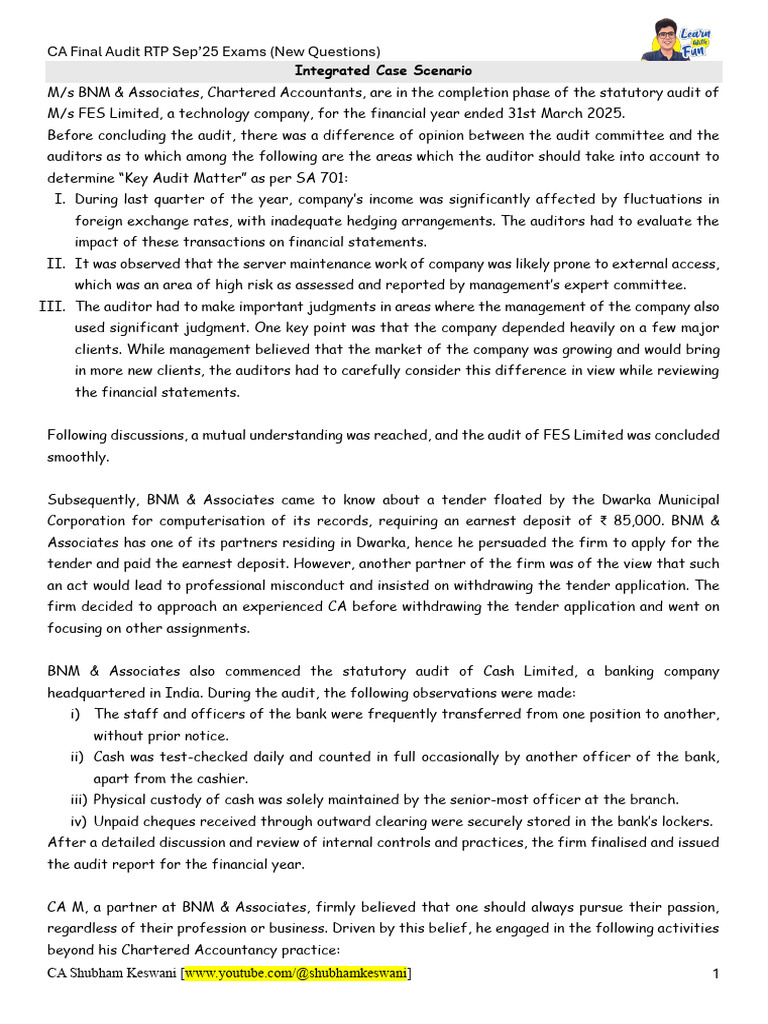 CA Final Audit RTP Sep’25 Exams (New Questions)