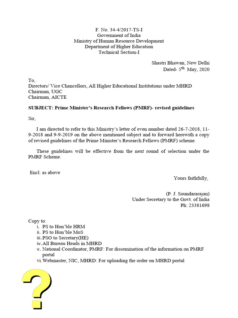 of revised guidelines of the Prime Minister’s Research Fellows (PMRF) scheme.