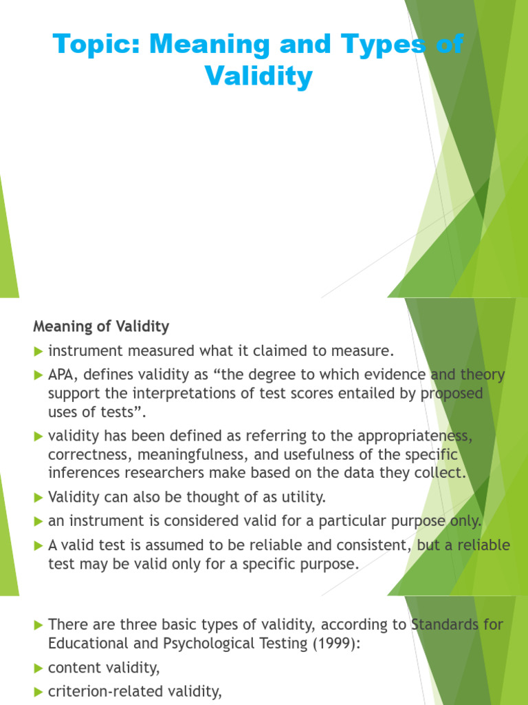 criterion, and the scores on the two measures are correlated to obtain the validity