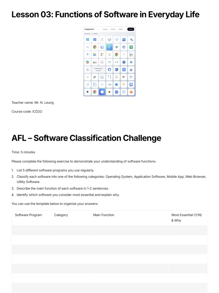 Lesson 03: Functions of Software in Everyday Life
