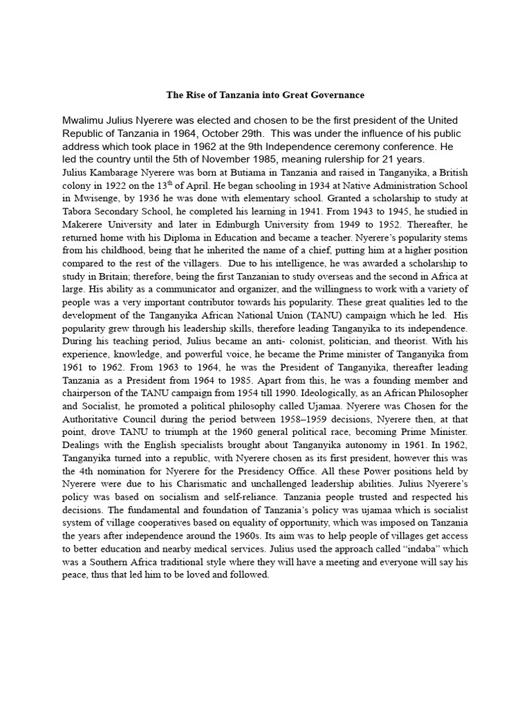 Nyerere were due to his Charismatic and unchallenged leadership abilities. Julius Nyerere’s