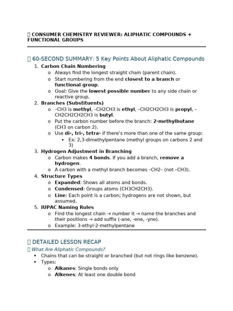 🔬 CONSUMER CHEMISTRY REVIEWER: ALIPHATIC COMPOUNDS +