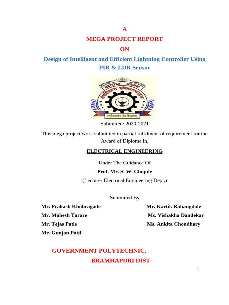 guidance of Prof. Mr. S. W. Chopde sir in the Department of Electrical