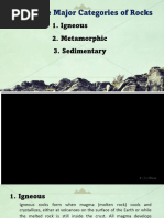 categories based on how the rocks form: igneous sedimentary and metamorphic rock.