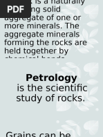 Petrology is the scientific study of rocks. Rocks are combined aggregation of minerals.
