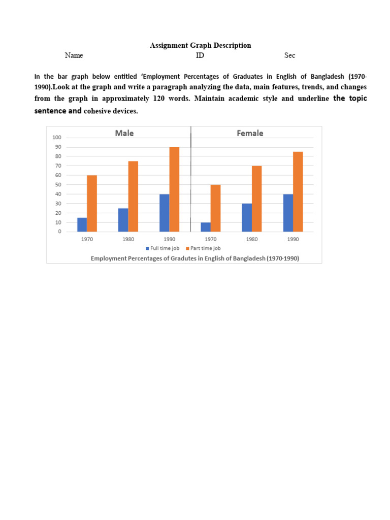 In the bar graph below entitled ‘Employment Percentages of Graduates in English of Bangladesh (1970-