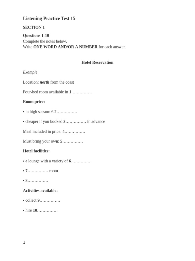 Write ONE WORD AND/OR A NUMBER for each answer.