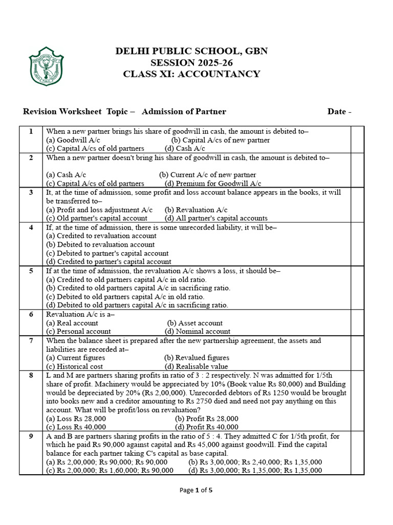 April 1st 2019, they admitted Rahul as a partner for 1/5th share in the profits of the firm. On