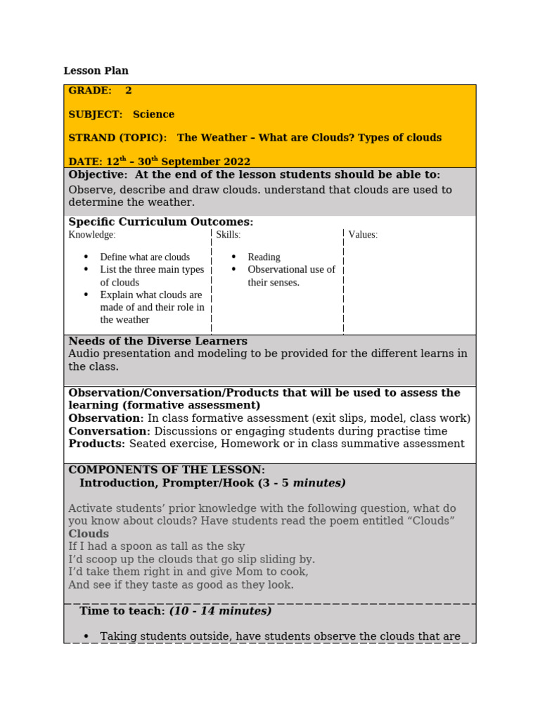 STRAND (TOPIC): The Weather – What are Clouds? Types of clouds