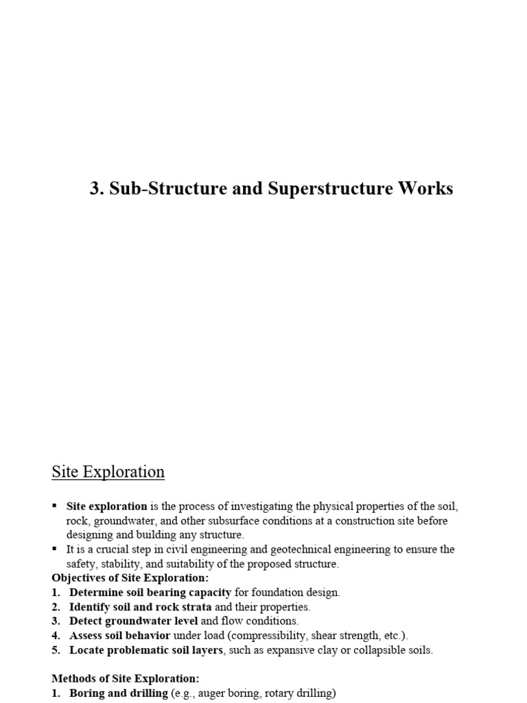 • The main objective of soil exploration is to extract adequate info. about the type and