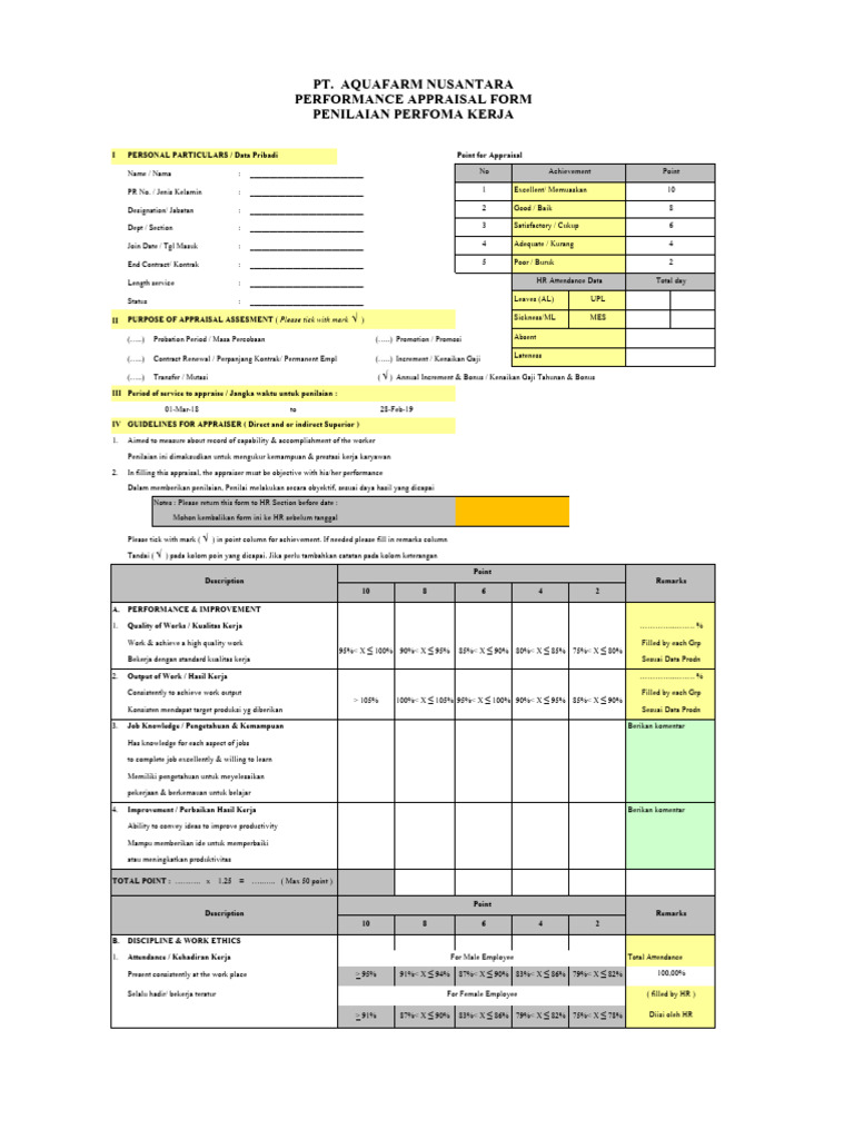 Penilaian ini dimaksudkan untuk mengukur kemampuan & prestasi kerja karyawan