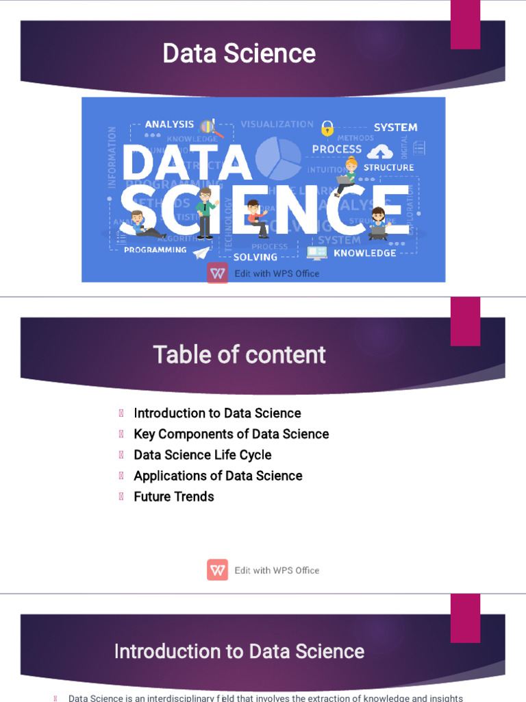Data Science is an interdisciplinary f ield that involves the extraction of knowledge and insights