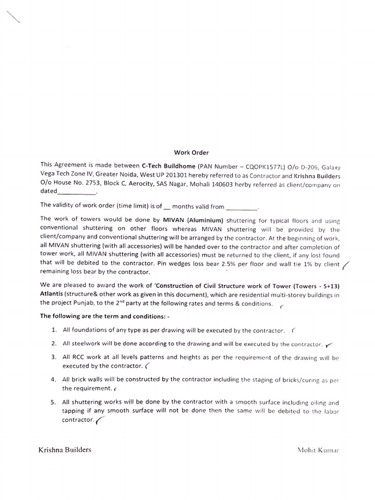 This Agreement is made between C-Tech Buildhome (PAN Number cQoPK1577L) O/o D-206, Galaxy