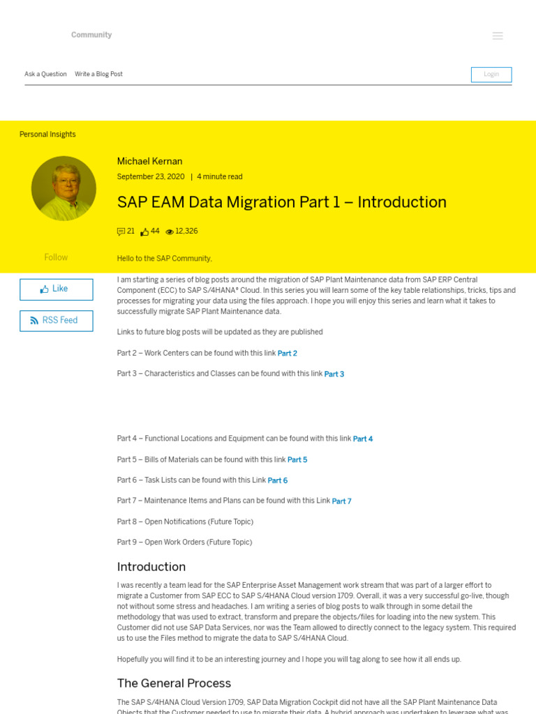 I am starting a series of blog posts around the migration of SAP Plant Maintenance data from SAP ERP Central
