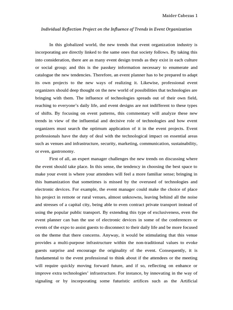 Individual Reflection Project on the Influence of Trends in Event Organization