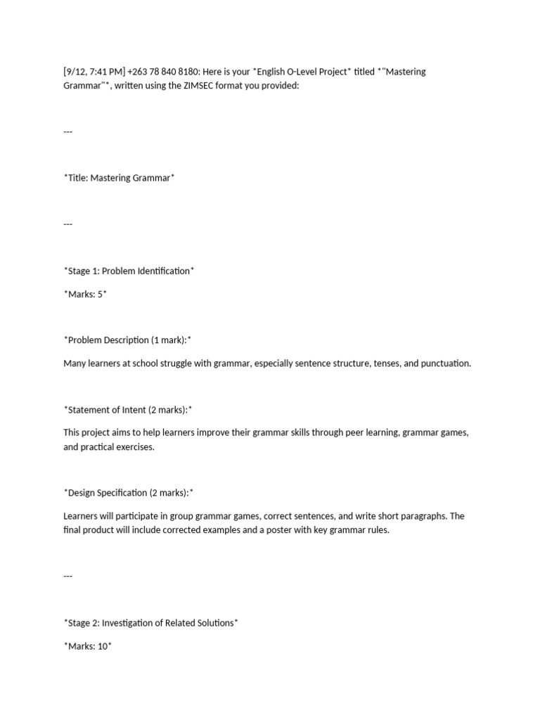 [9/12, 7:41 PM] +263 78 840 8180: Here is your *English O-Level Project* titled *"Mastering