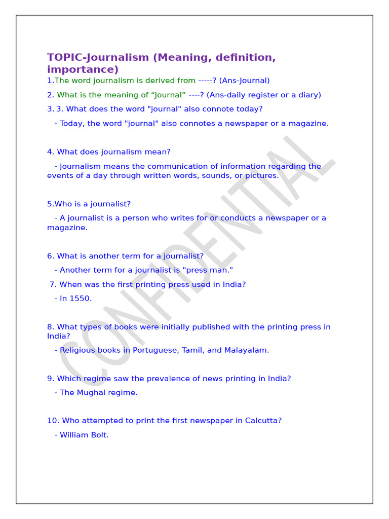 33.Journalism is defined as: (Minimum two definition have to memories for