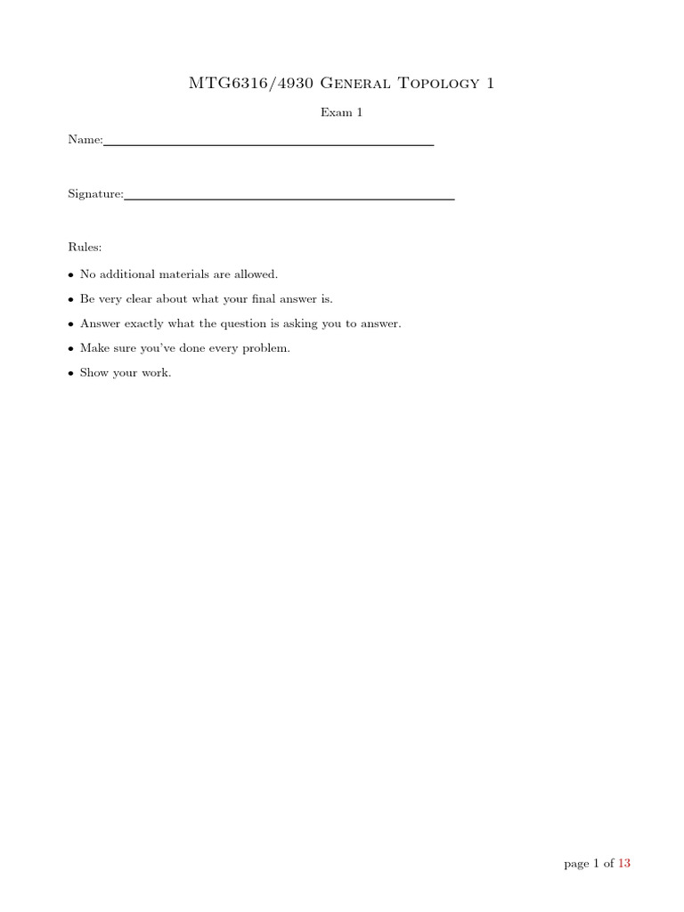 MTG6316/4930 General Topology 1