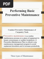 lubrication, sharpening of tools, and tightening of bolts and screws.