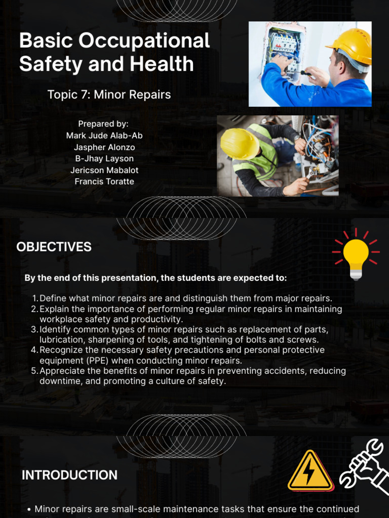 equipment (PPE) when conducting minor repairs.