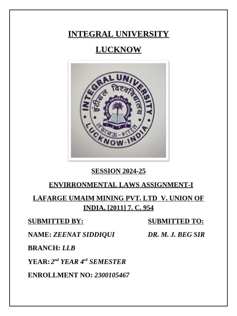 ENVIRRONMENTAL LAWS ASSIGNMENT-I