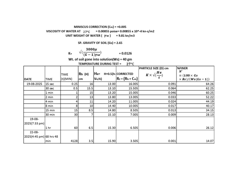 SP. GRAVITY OF SOIL (Gs) = 2.65