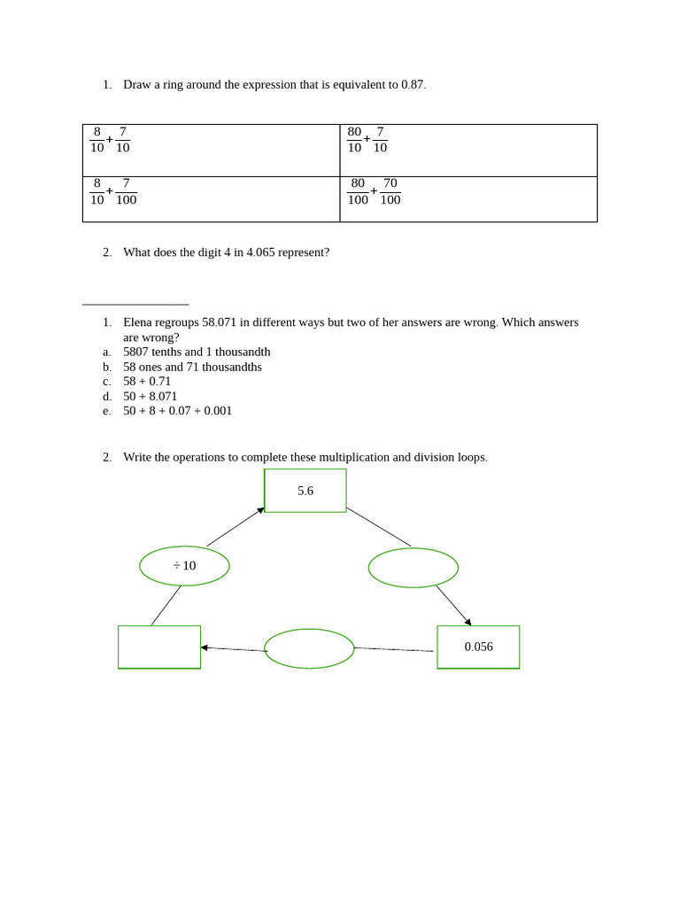 1. Draw a ring around the expression that is equivalent to 0.87.