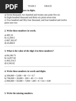 4. Write the number seventy, nine tenths, seven hundredths and nine thousands as a decimal.