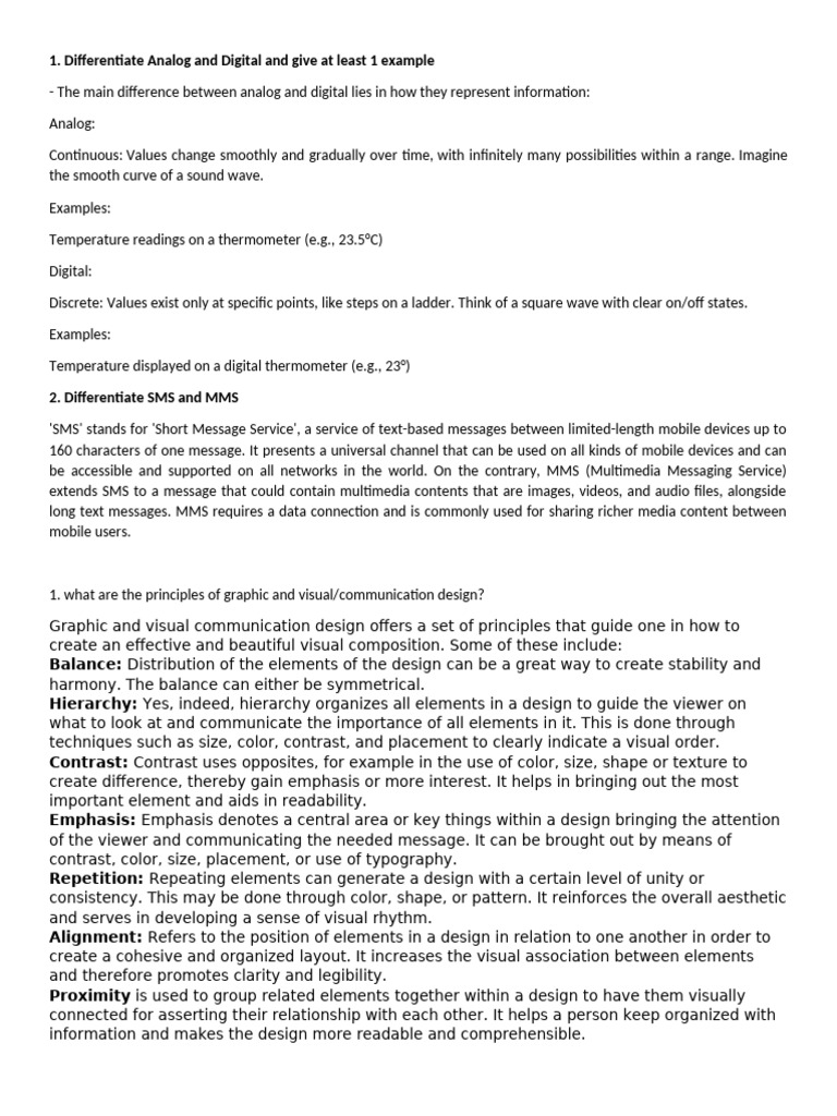 1. what are the principles of graphic and visual/communication design?