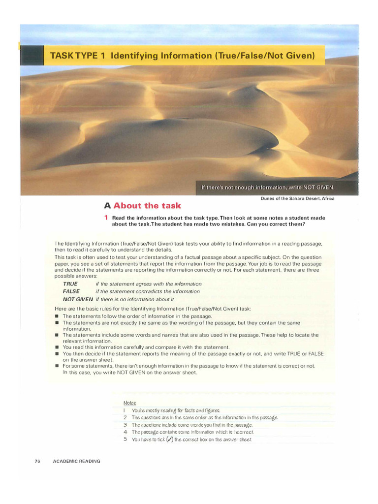 TASK TYPE 1 Identifying Information (True/False/Not Given)