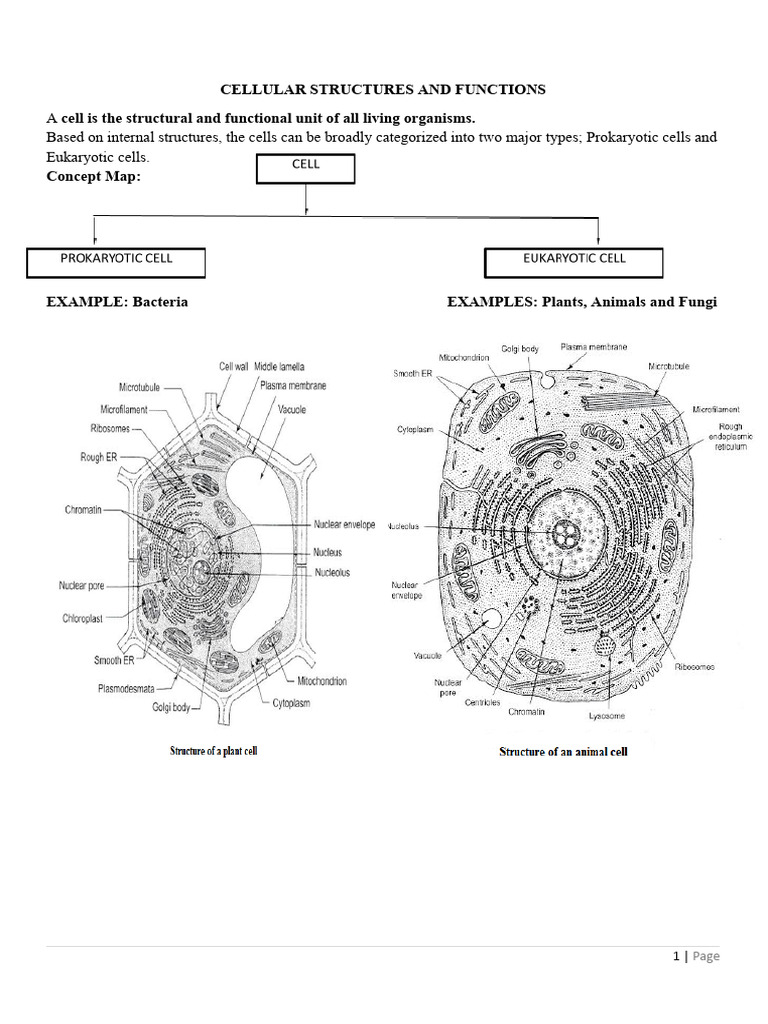 Based on internal structures, the cells can be broadly categorized into two major types; Prokaryotic cells and