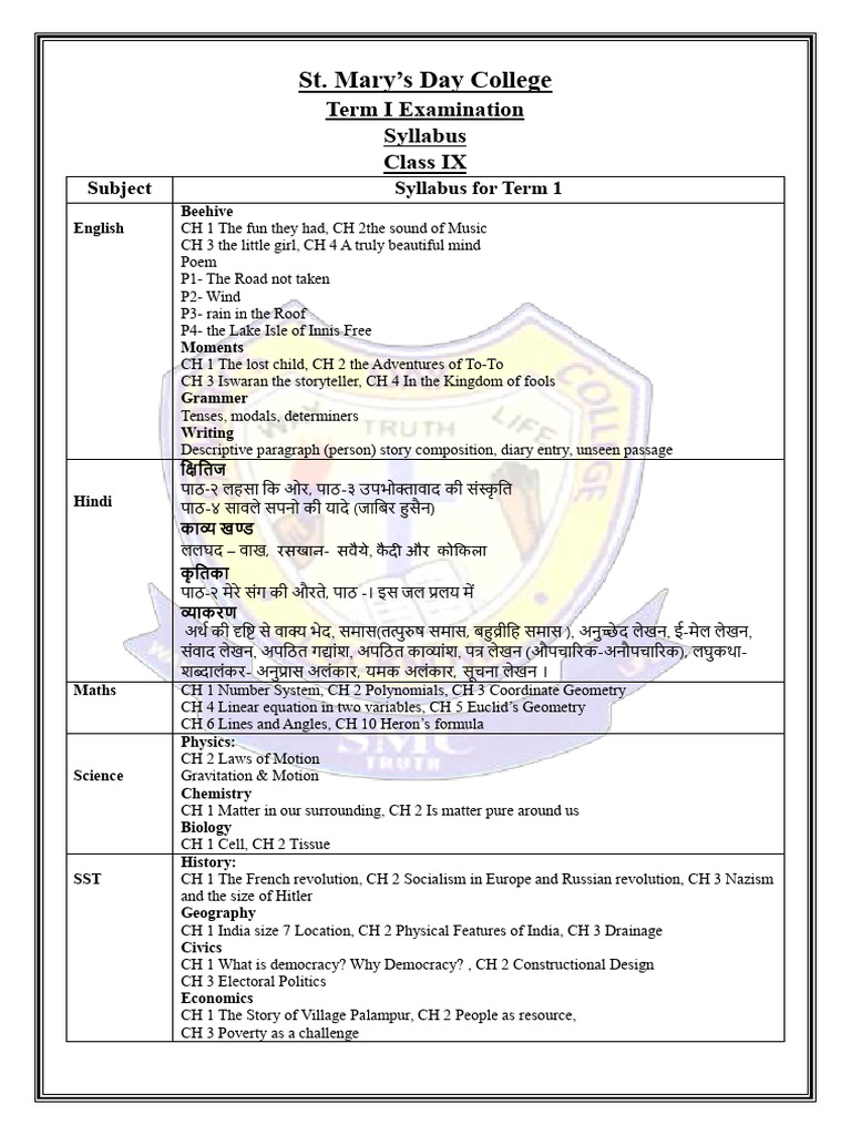 Subject Syllabus for Term 1