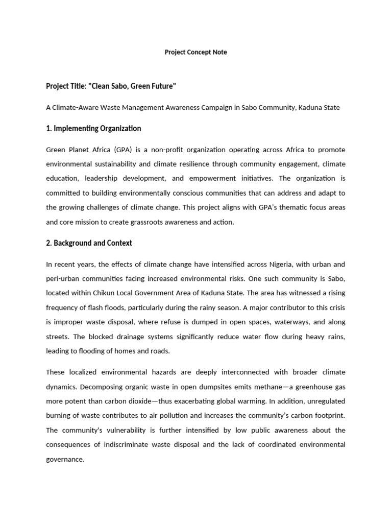 A Climate-Aware Waste Management Awareness Campaign in Sabo Community, Kaduna State
