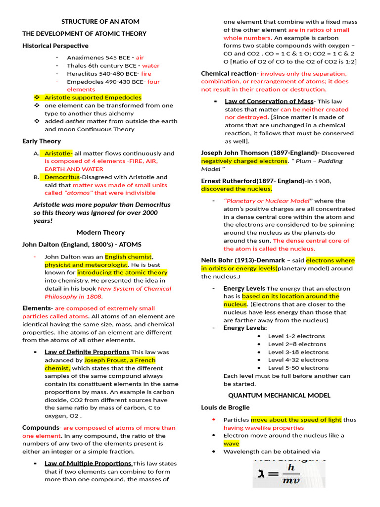 THE DEVELOPMENT OF ATOMIC THEORY