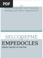 - Empedocles 490-430 BCE- four combination, or rearrangement of atoms; it does