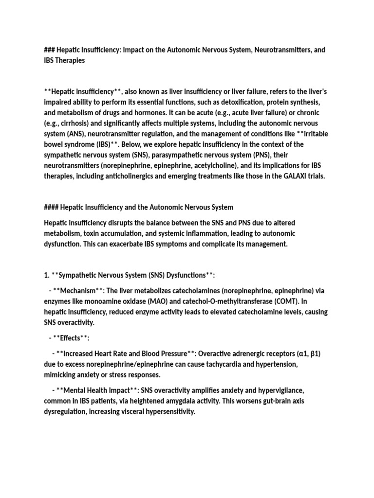 bowel syndrome (IBS)**. Below, we explore hepatic insufficiency in the context of the