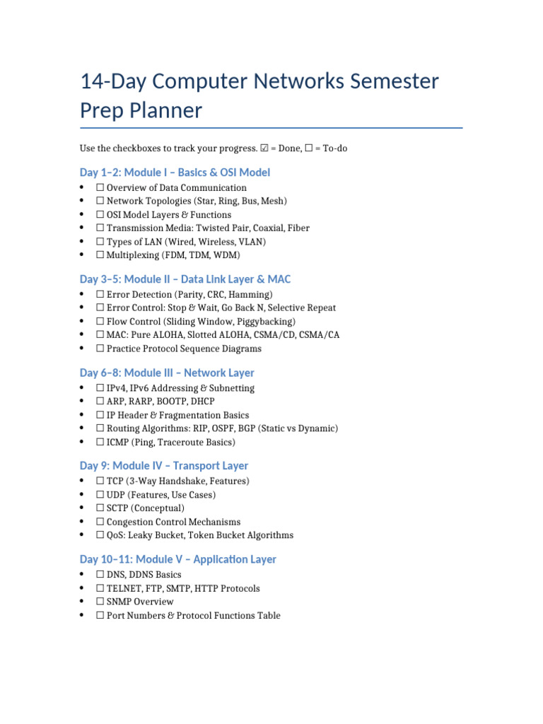 14-Day Computer Networks Semester
