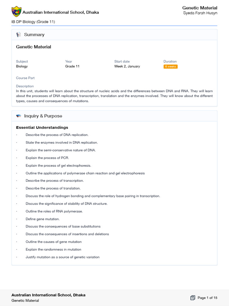 IB DP Biology (Grade 11)