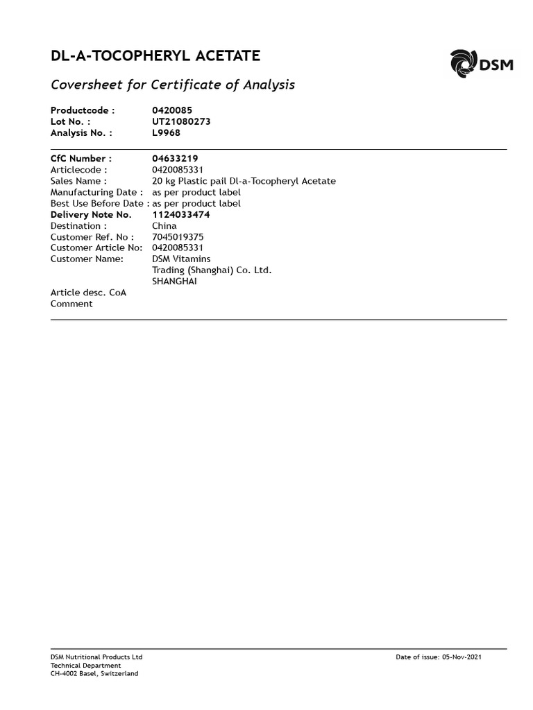 DSM Nutritional Products Ltd Date of issue: 05-Nov-2021