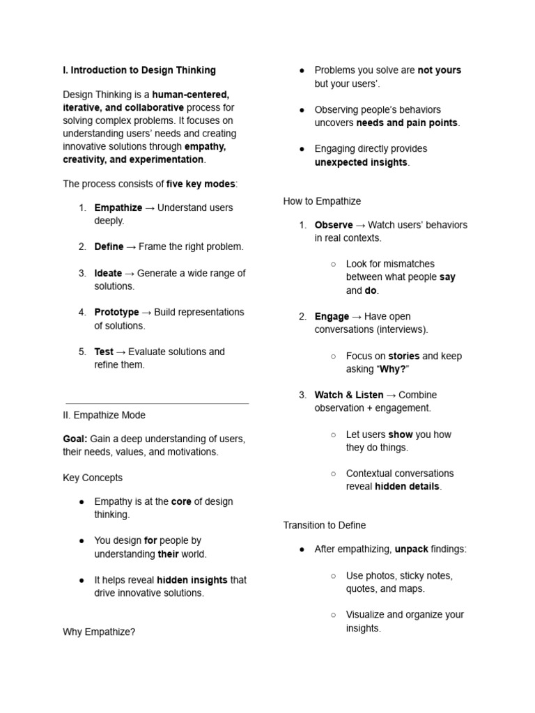 iterative, and collaborative process for ● Observing people’s behaviors