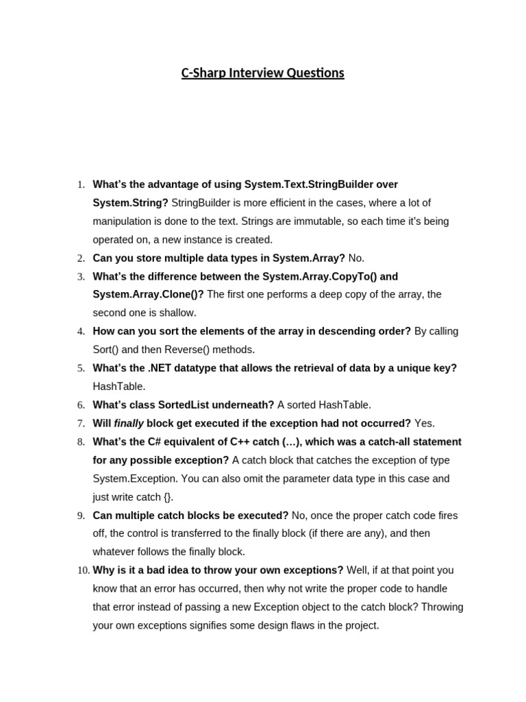 C Sharp Interview Questions