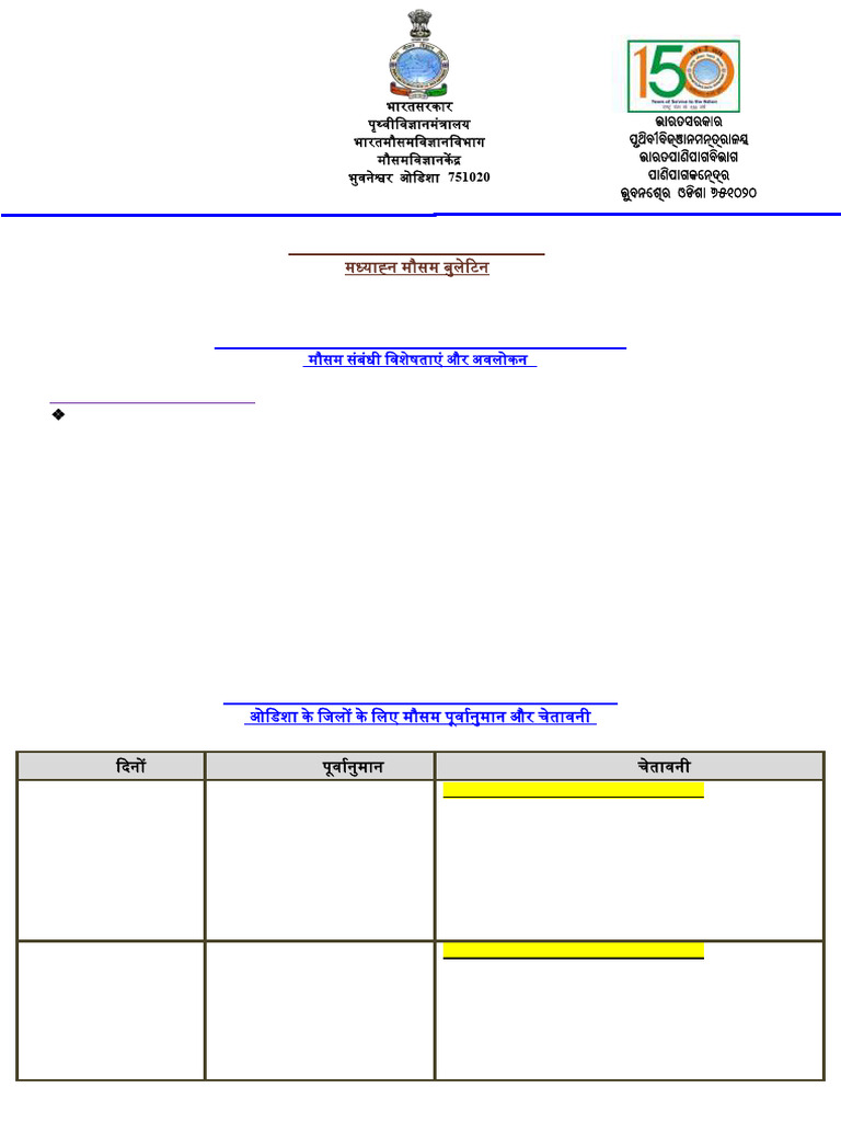 Bhubaneswar, Odisha-751020 मौसमववज्ञानकें द्र ଭାରତପାଣିପାଗବିଭାଗ
