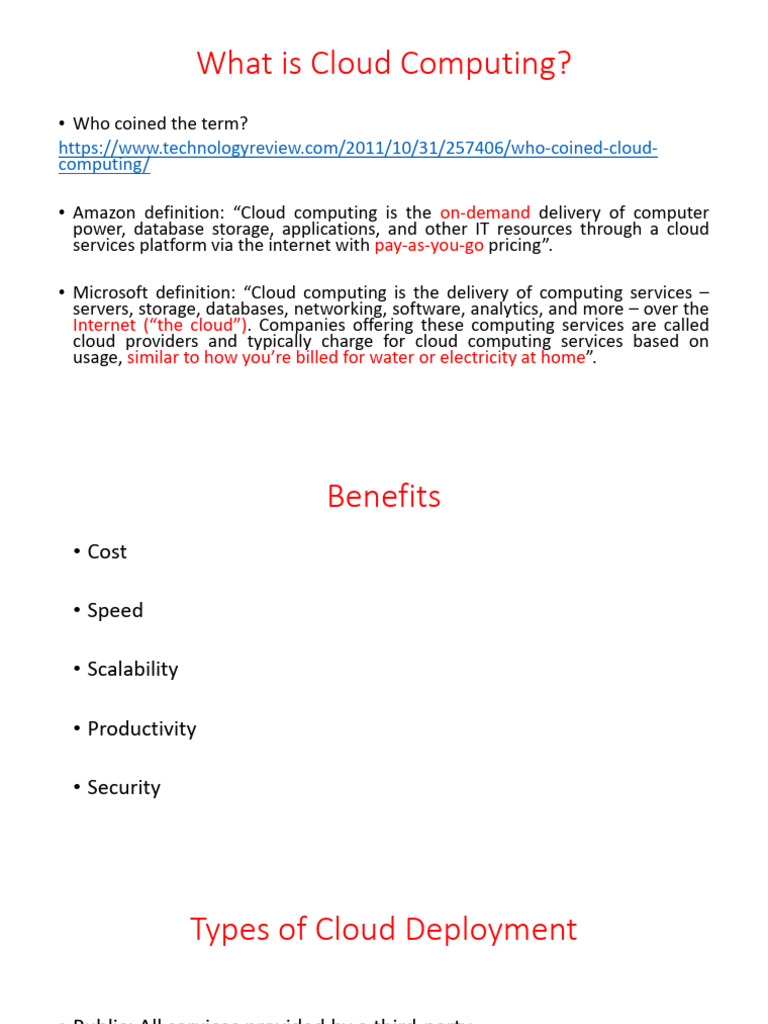 • Amazon definition: “Cloud computing is the on-demand delivery of computer