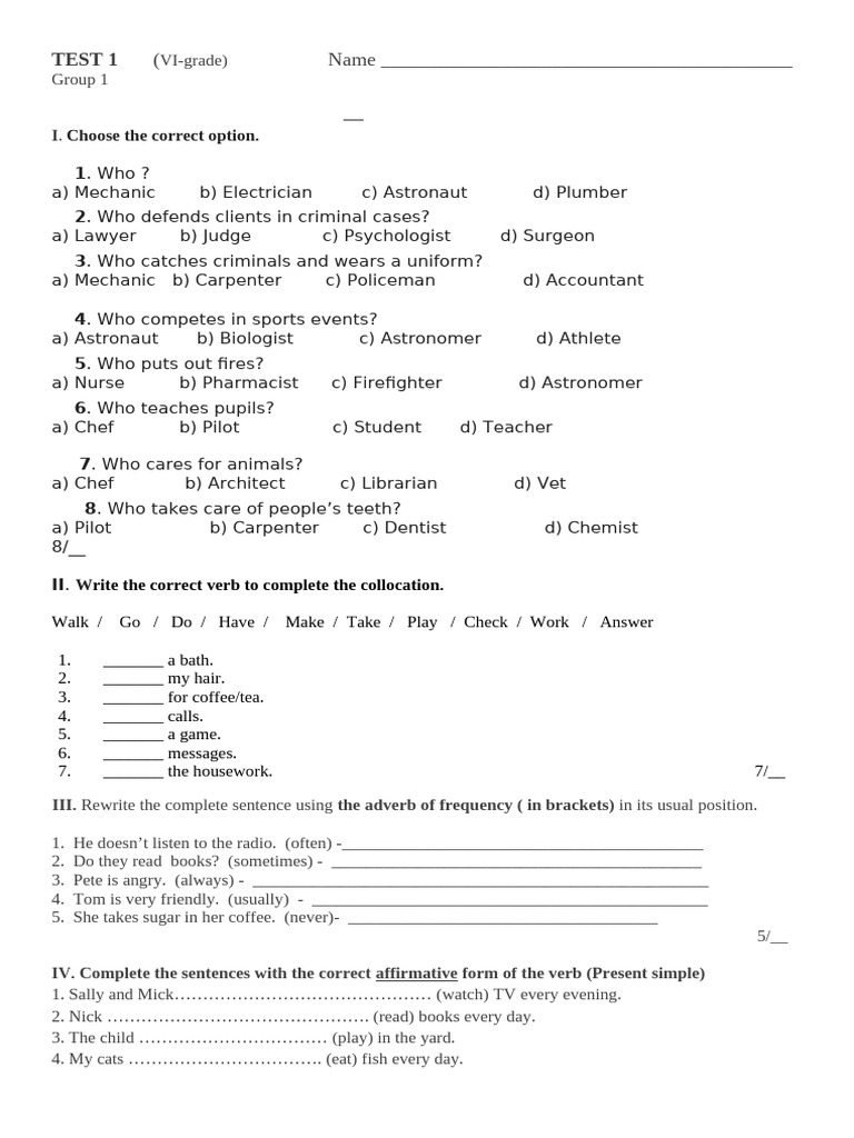 TEST 1 (VI-grade) Name _________________________________________
