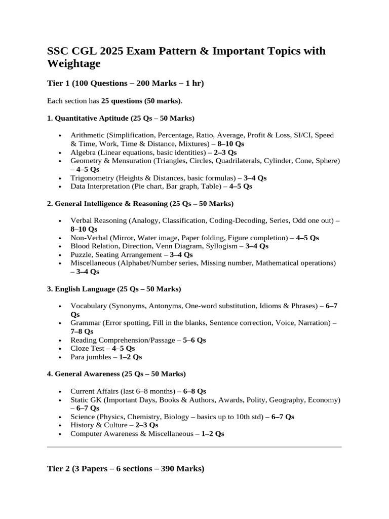 SSC CGL 2025 Exam Pattern & Important Topics with