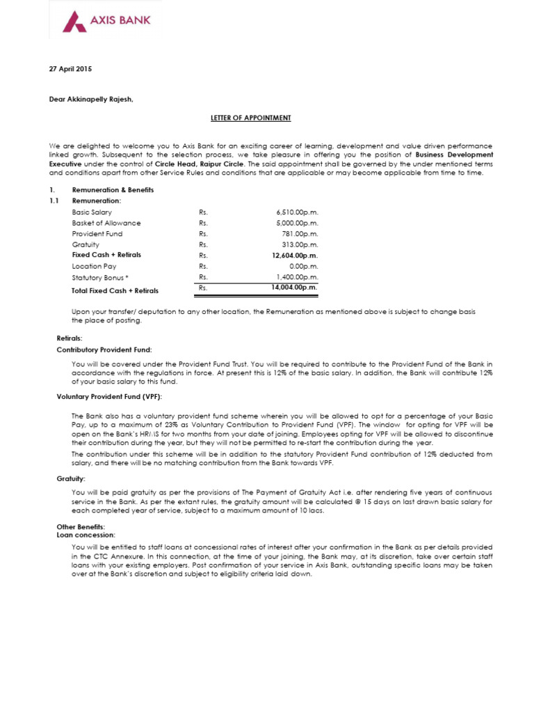 We are delighted to welcome you to Axis Bank for an exciting career of learning, development and value driven performance