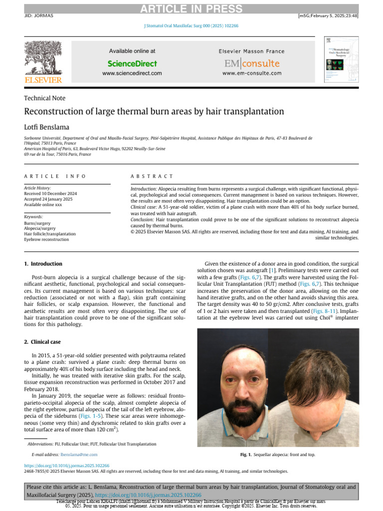 Please cite this article as: L. Benslama, Reconstruction of large thermal burn areas by hair transplantation, Journal of Stomatology oral and