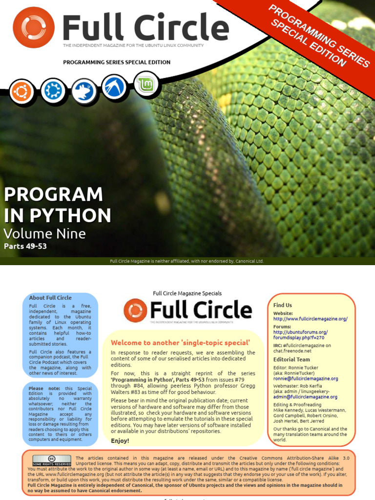 Full Circle Magazine 'Programming in Python' Series. Volume 9.